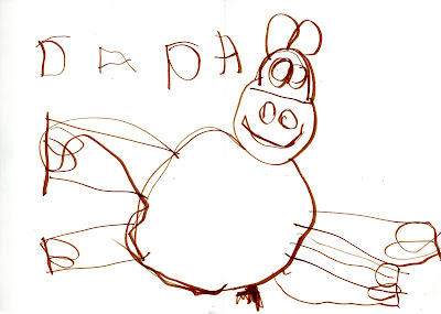 Утром Пингвиненок очень спешил. Он всю ночь ворочался. Он спешил пойти гулять со своей подружкой ровно в одну минуту и в четыре секунды. За минуточку он успел почистить зубы, позавтракать, снять фартук, надеть тапочки, открыть дверь, запереть ключиком, положить его в корзинку и скорее помчался вприпрыжку. Но он успел еще минуточку посмотреть на цветок, понюхать и собрать все цветы, которые росли на этой поляне. И пошел. Он подарил цветы и обнял. И вот они вместе попили чай. Они друг другу подарили торты, съели их. Друг у нее даже переночевал. А потом попрощались друг с другом, подарили подарки, а потом они сидели дома и смотрели книжку. Счастье! Здорово! Но он сидел и хотел нарисовать четырех пингвинят. Сначала рисовал головку, глазки и ротик. Но боялся, что дождь пойдет. Хотел написать: «Длинная история». Но он так торопился домой, потому что боялся, что дождь пойдет, что в голове у него мысли перепутались и получилось: «Д-е-с-и-я». Что это за слово? Потом он посмотрел в книжке одну картинку и засмеялся, поставил букет в вазочку. И стал играть. И все заиграли. И все-таки конец.